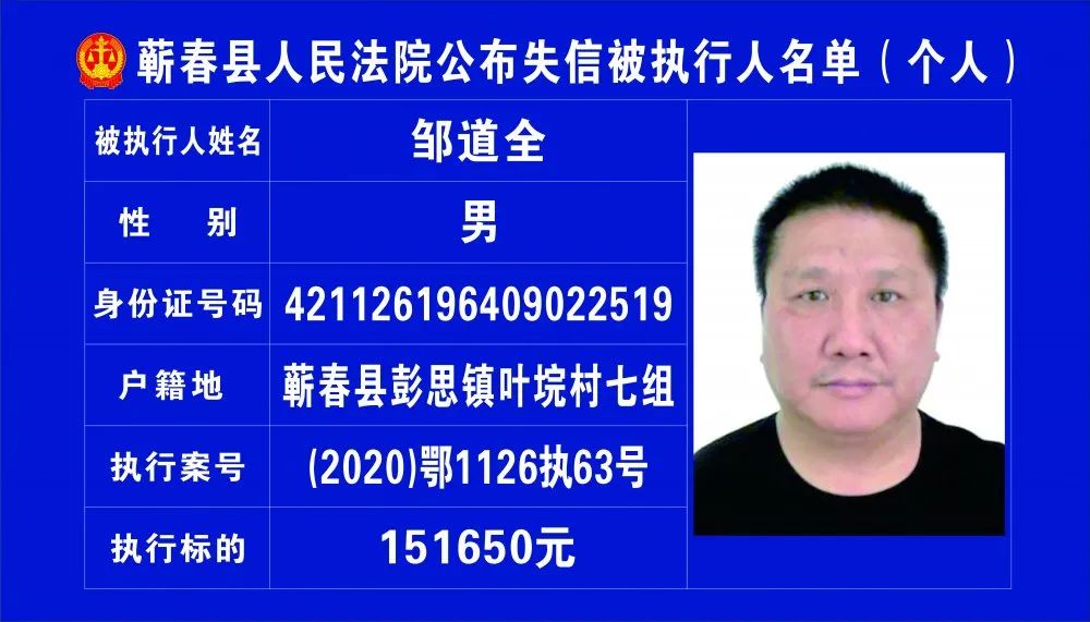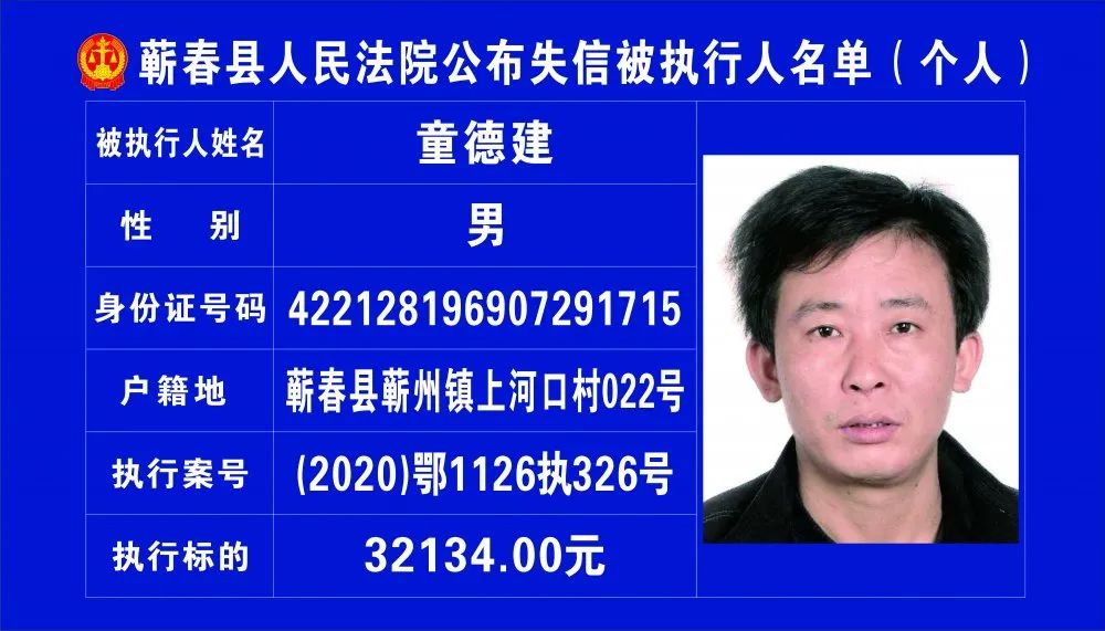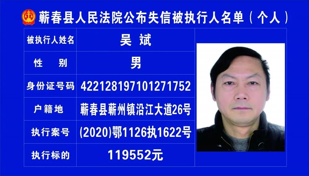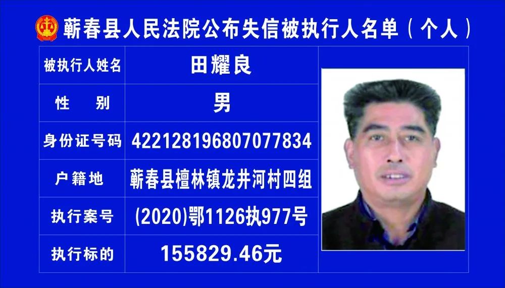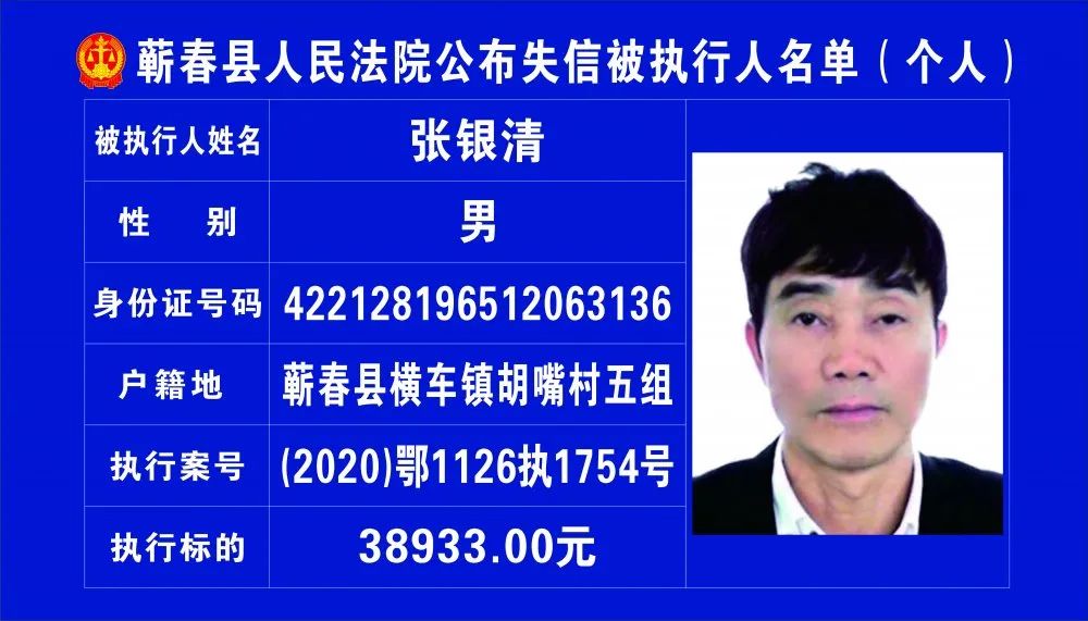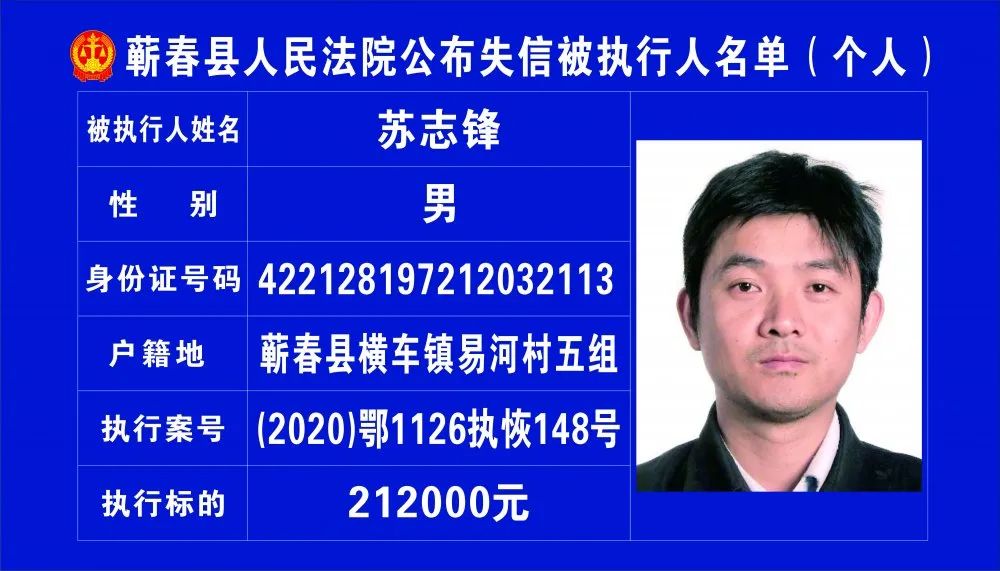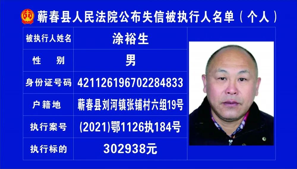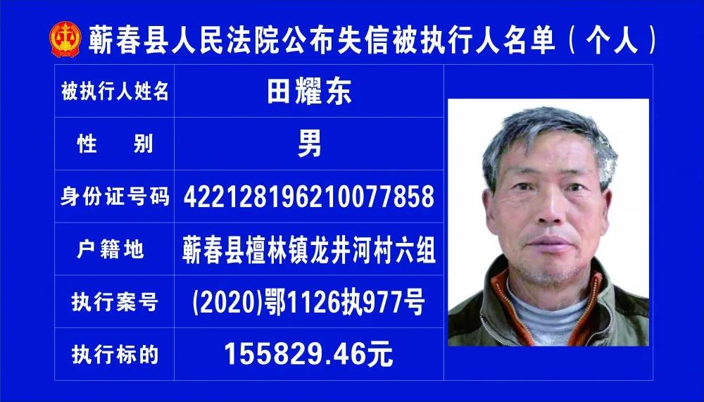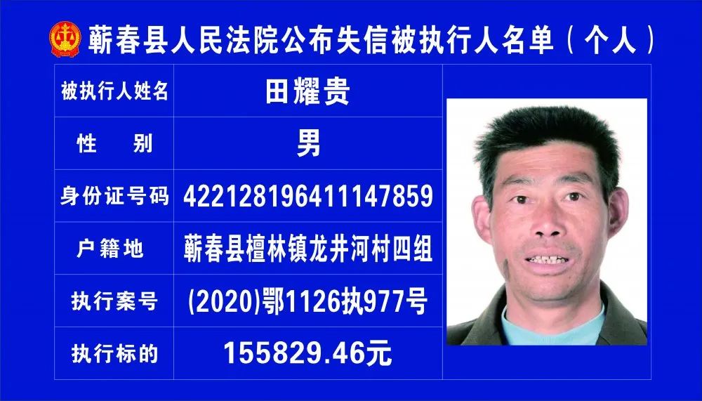 实名+照片曝光!蕲春法院公布第三期失信被执行人名单!