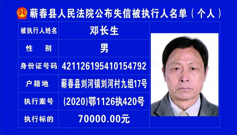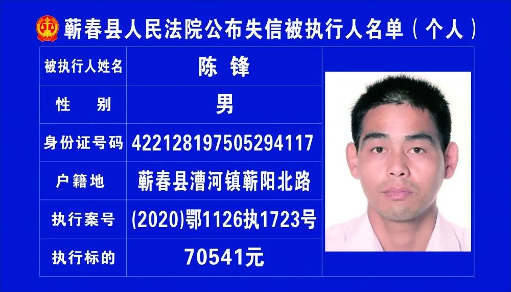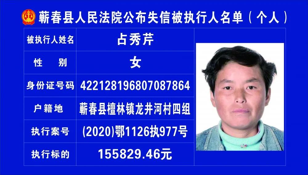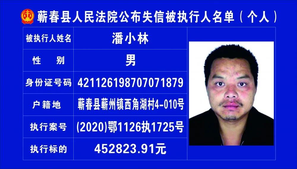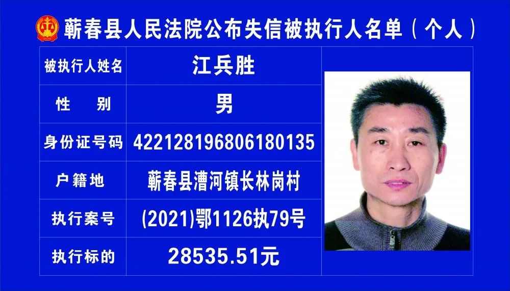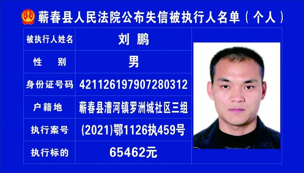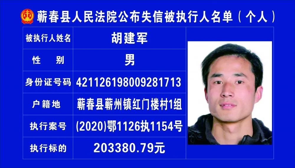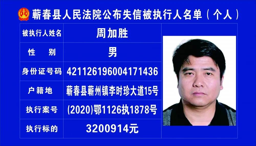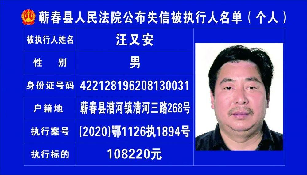 实名+照片曝光!蕲春法院公布第三期失信被执行人名单!