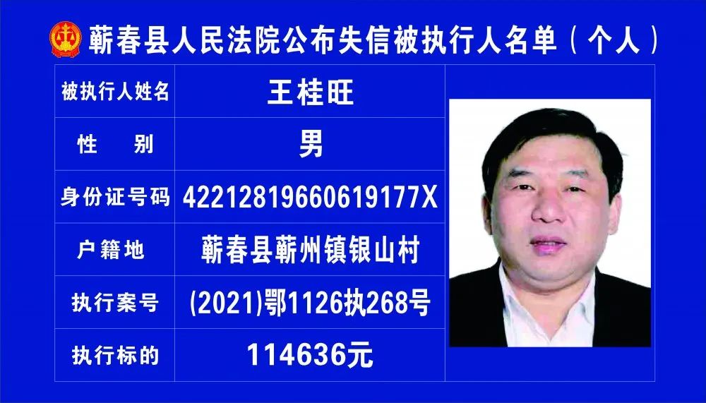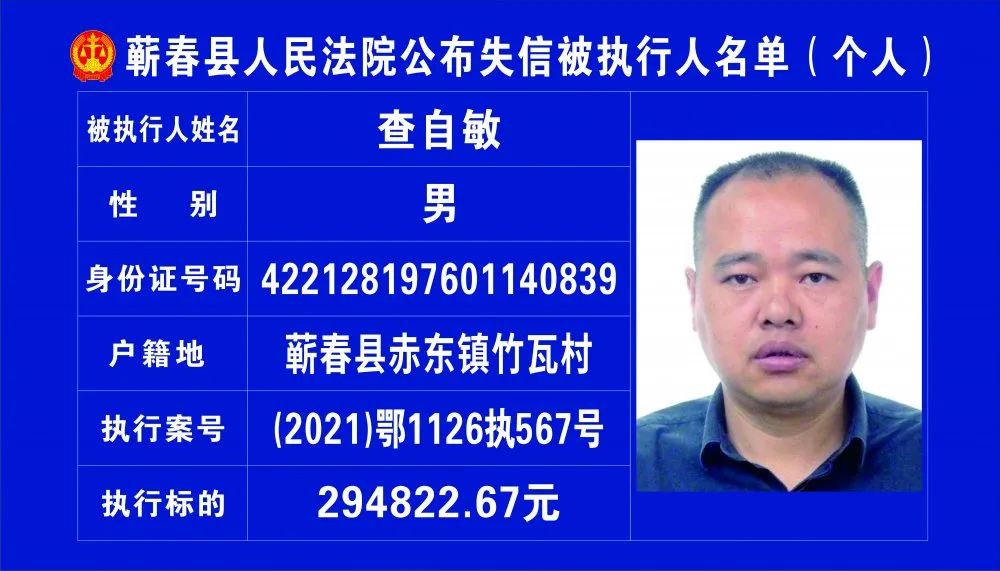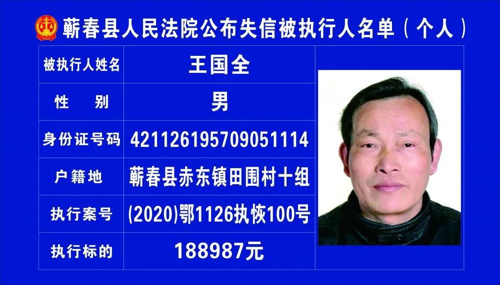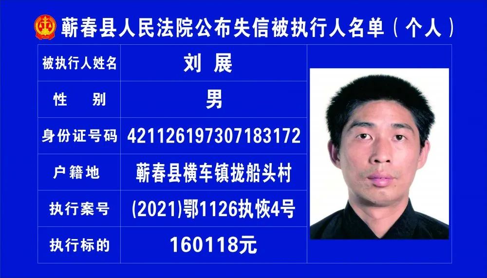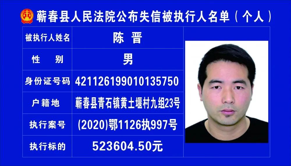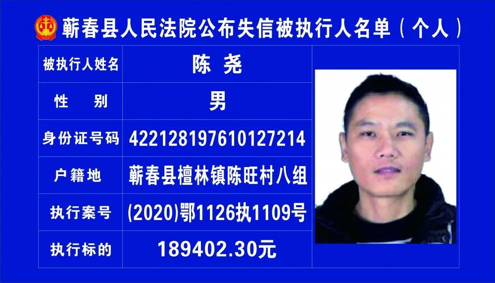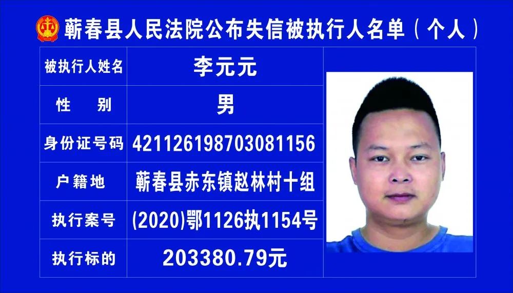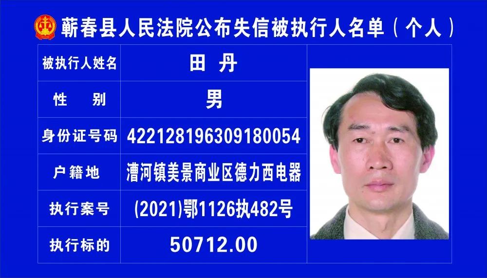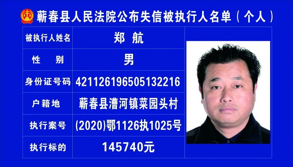 实名+照片曝光!蕲春法院公布第三期失信被执行人名单!