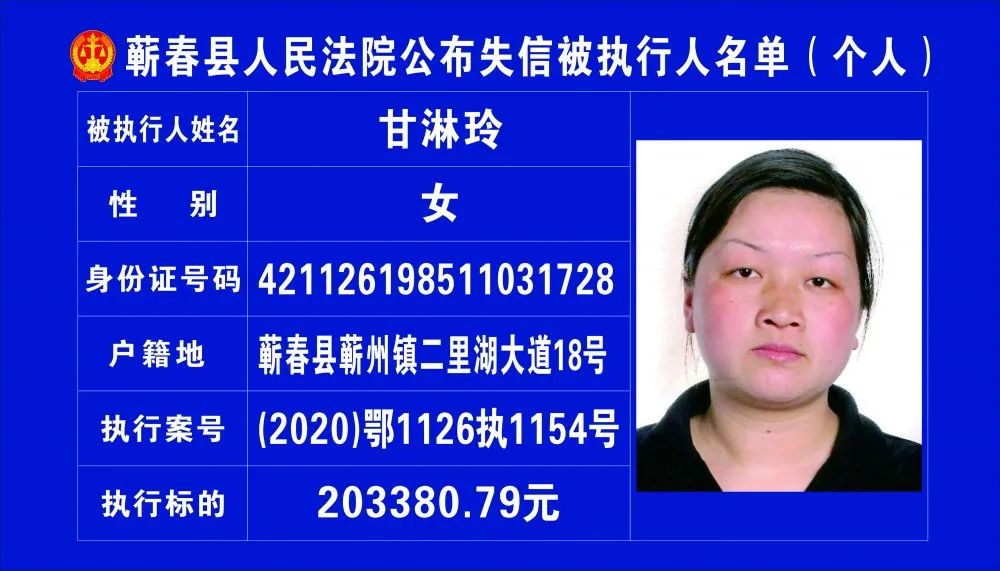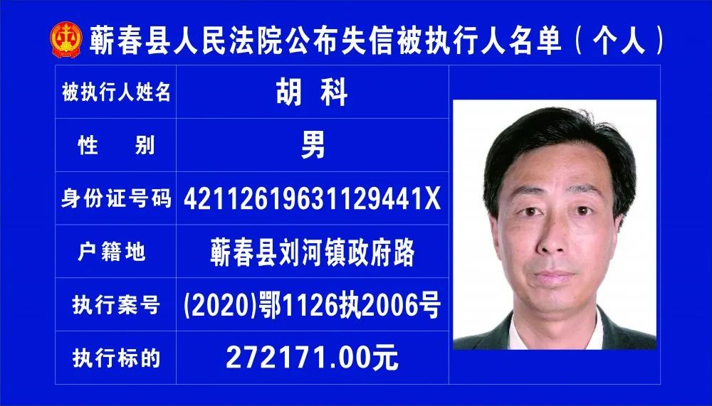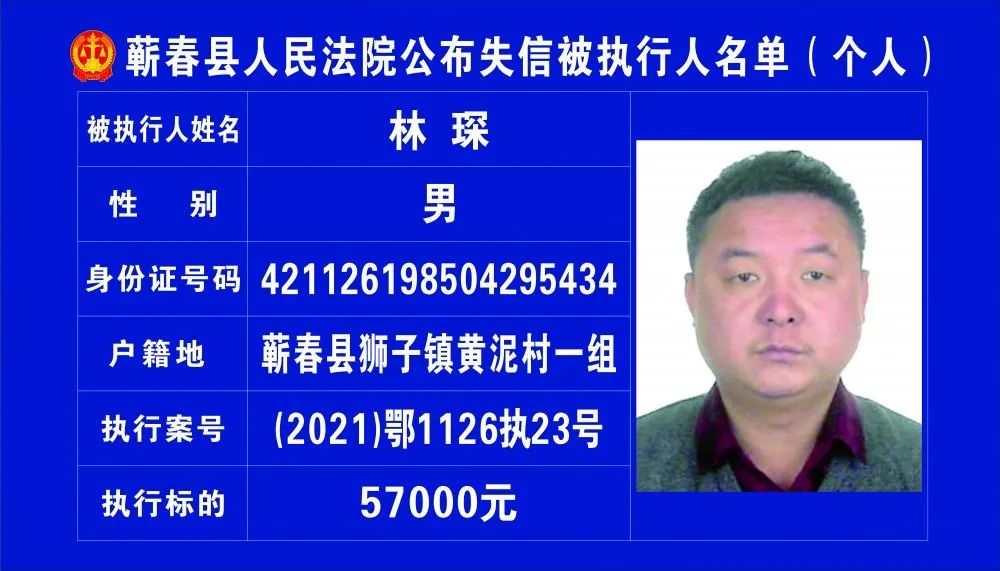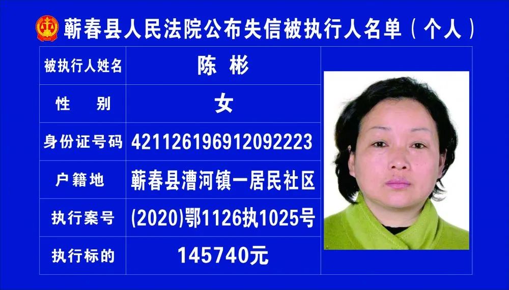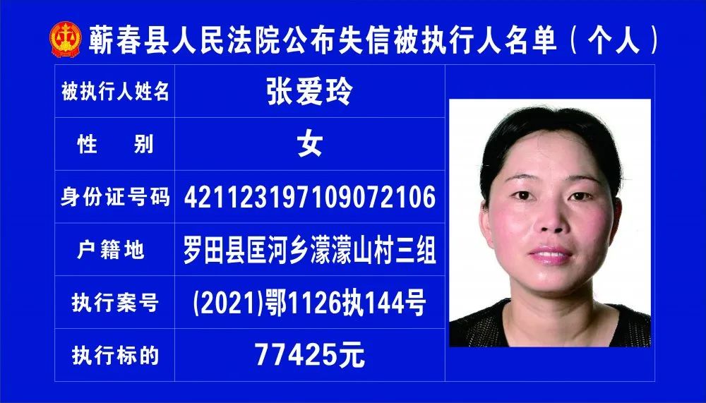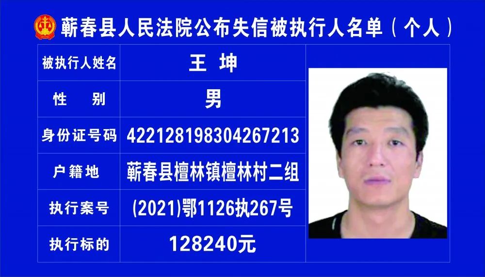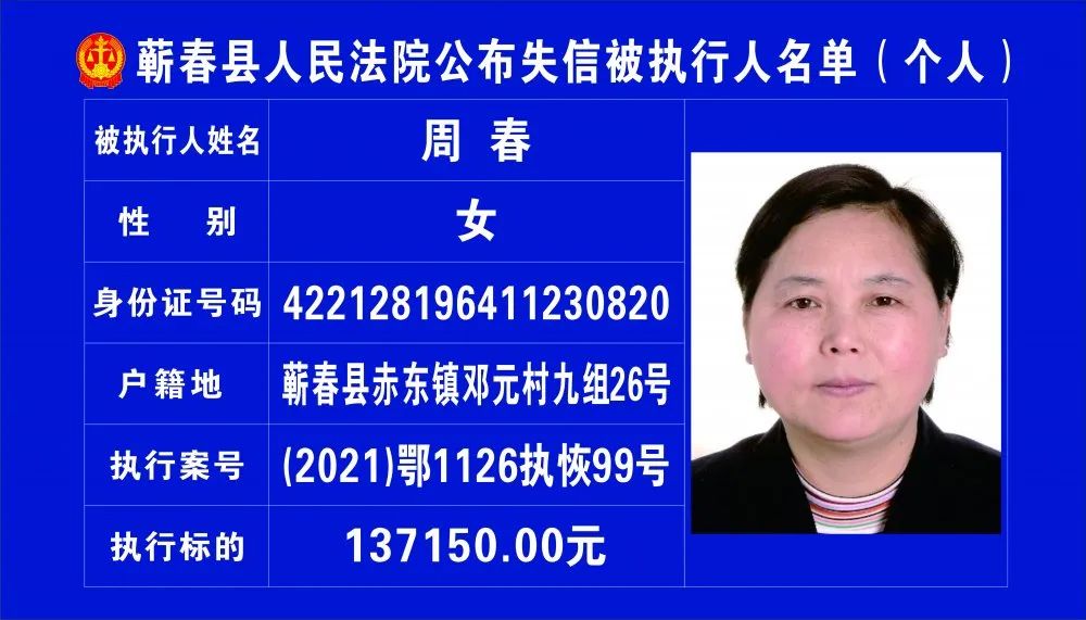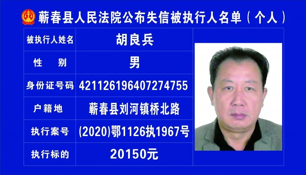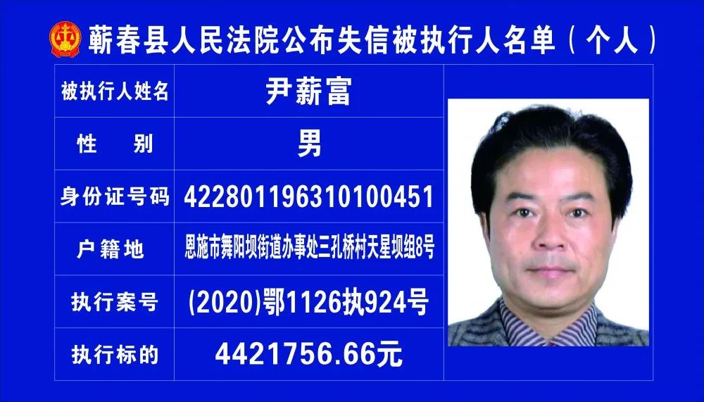 实名+照片曝光!蕲春法院公布第三期失信被执行人名单!