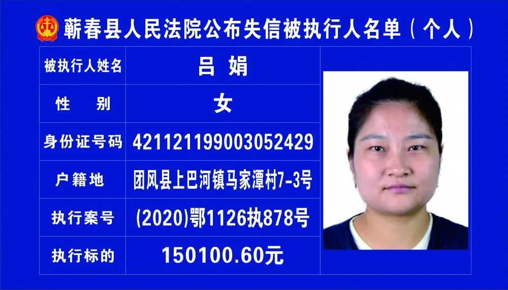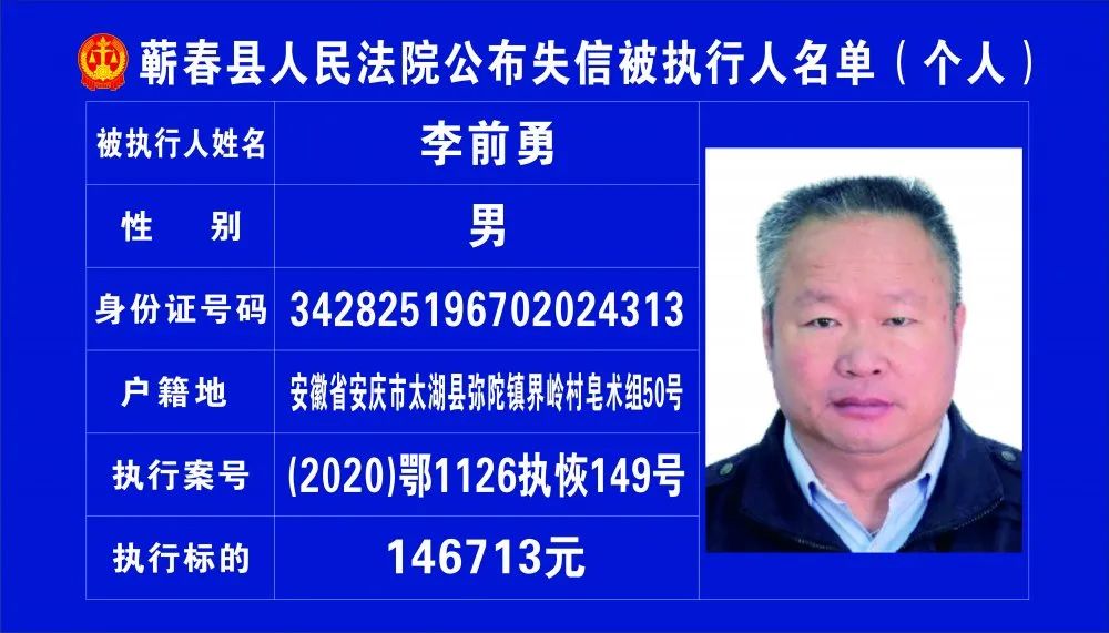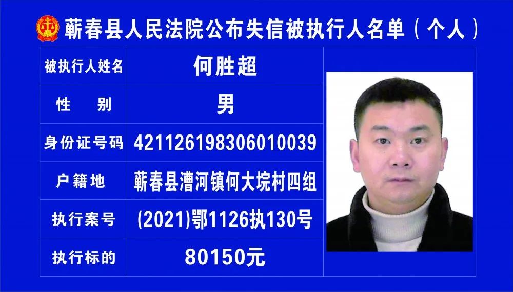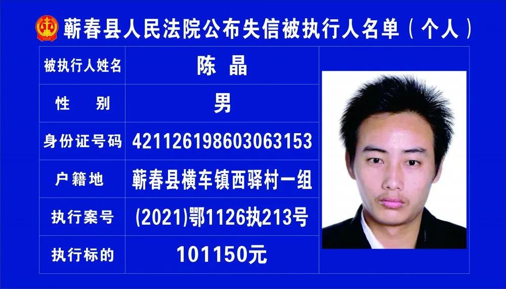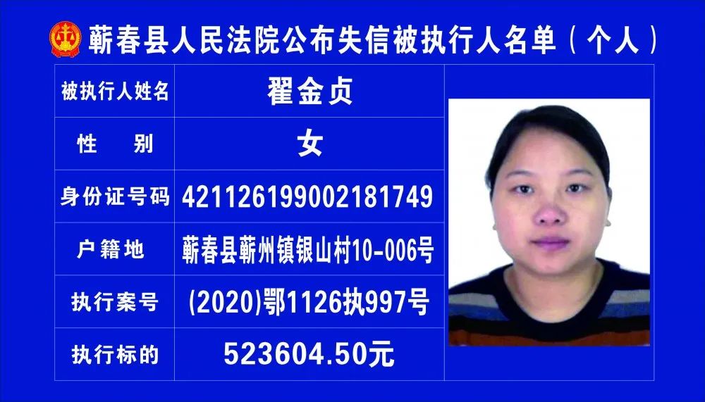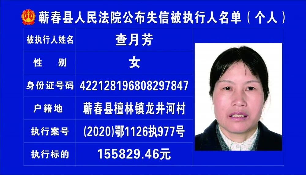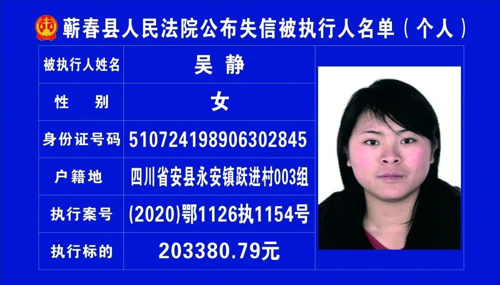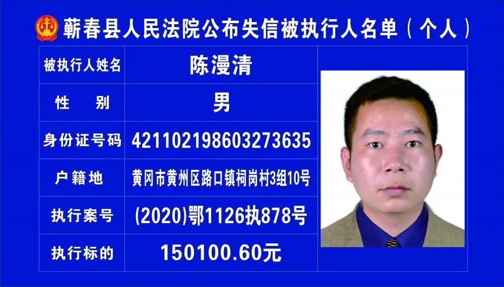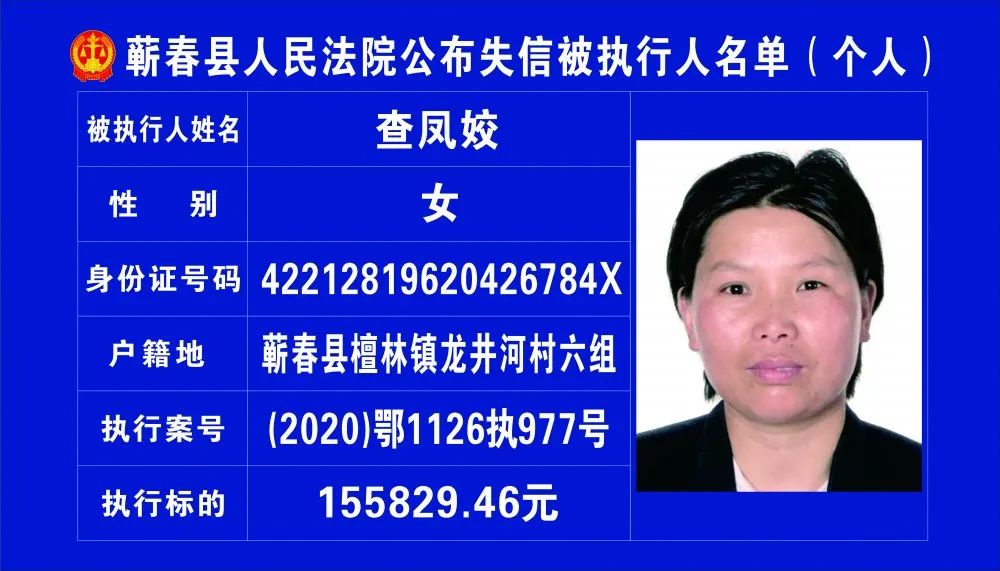 实名+照片曝光!蕲春法院公布第三期失信被执行人名单!