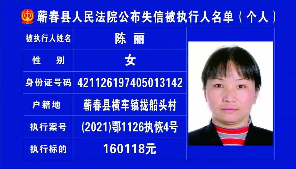 原标题:《实名+照片曝光!蕲春法院公布第三期失信被执行人名单!》