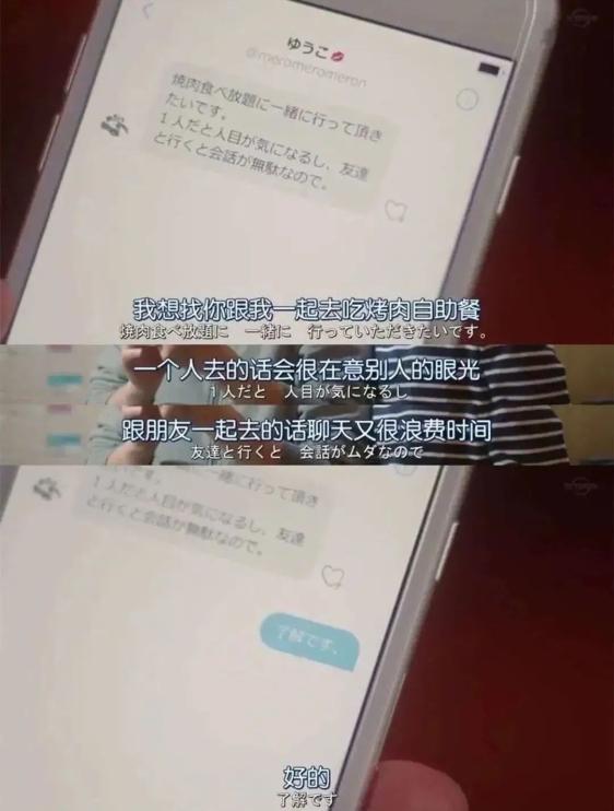 有委托他到家里品尝自己烹饪料理的家庭主妇,也有委托他陪同去上班的社恐小哥,还有委托他东京一日游的返乡“东漂”女孩......