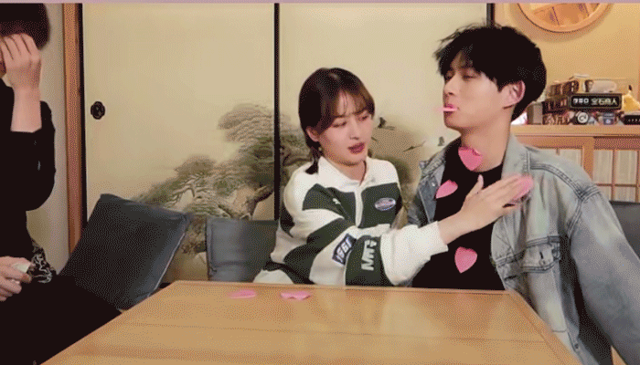两个人分别咬着一颗棉花糖的两端,唇越靠越近。
