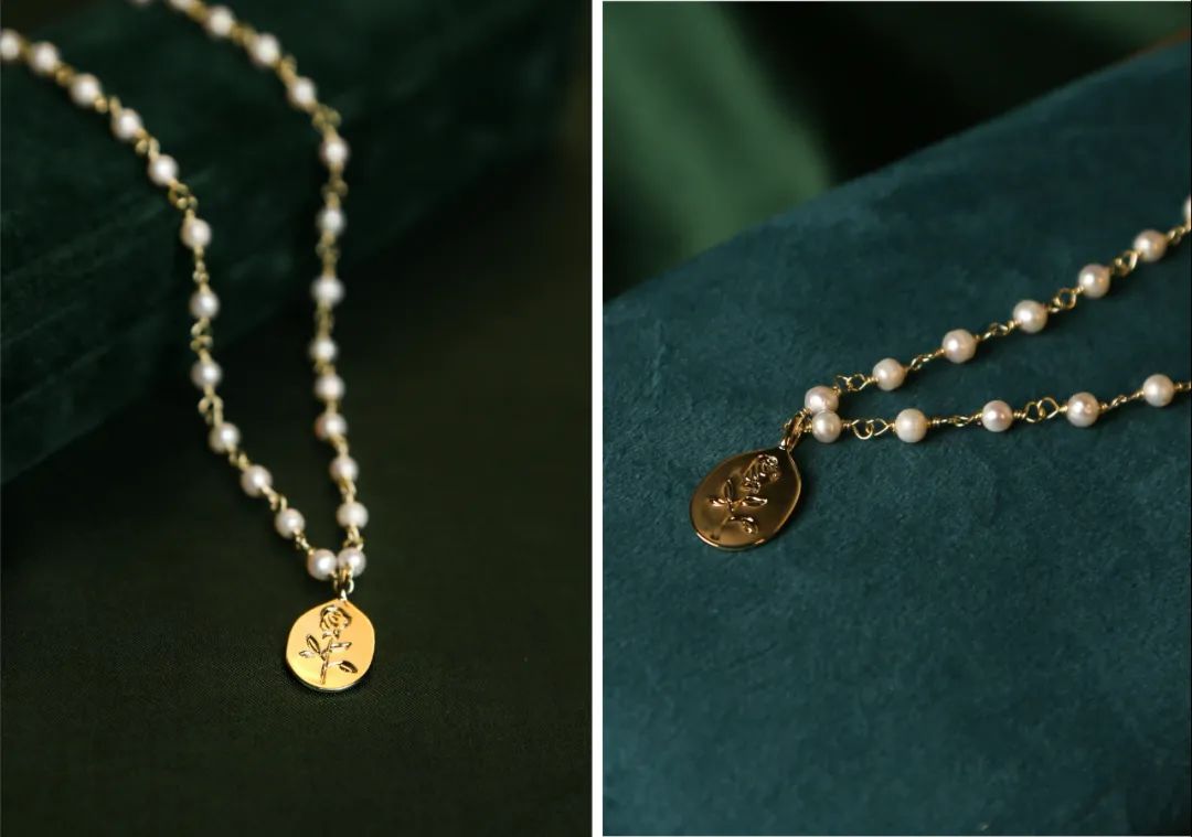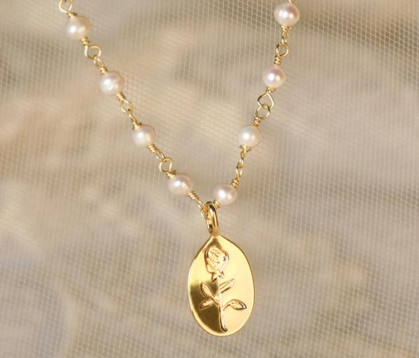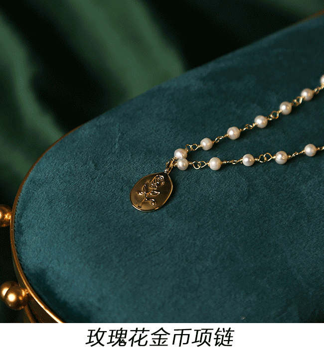 摸着良心说,这款玫瑰花金币珍珠项链真的是必冲款!