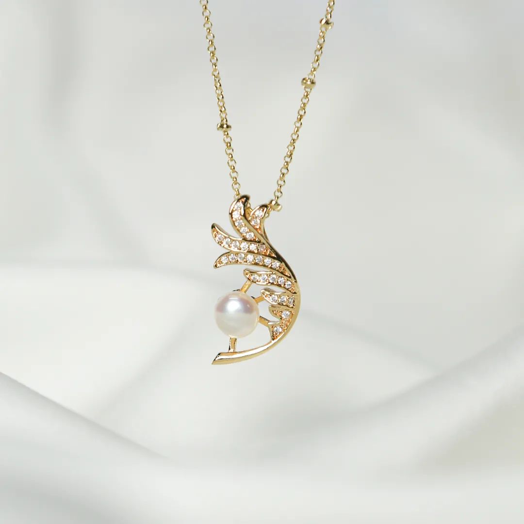 羽毛吊坠的边缘还镶满了锆石,让整体更加有质感。