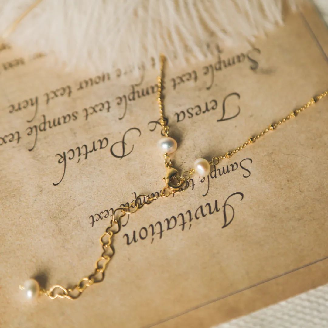 在项链的延长链处,设计师还分别点缀了三颗淡水珍珠,从背面一样望去也同样好看。