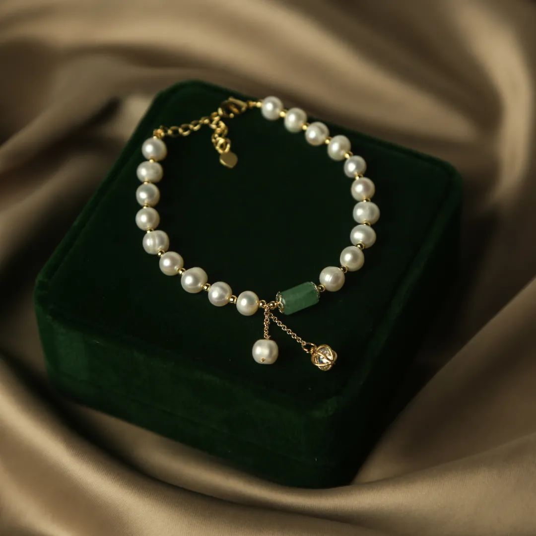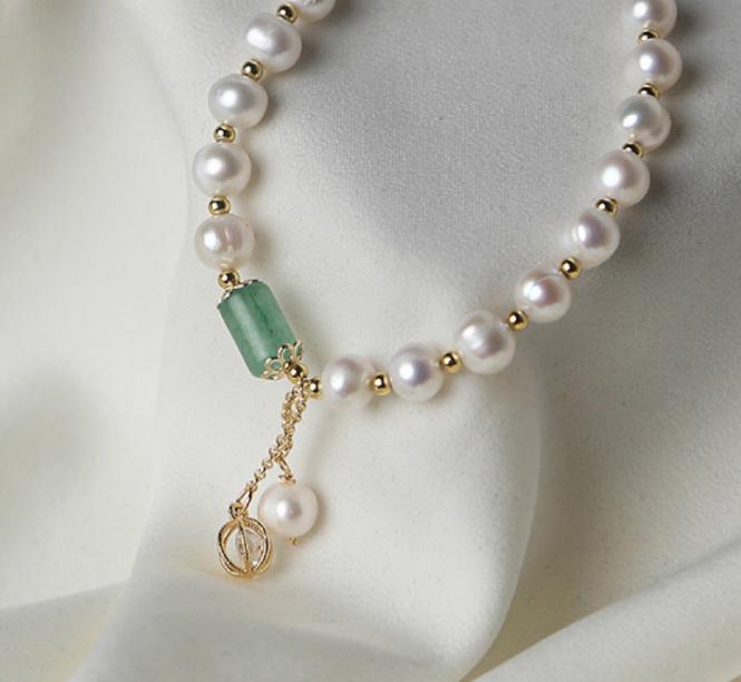 珍珠和玉石的搭配,一半是温柔,一半是复古。