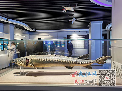 近日,记者从九江都昌泗山码头渡船加步行来到棠荫岛——鄱阳湖水文生态监测研究基地。此时的鄱阳湖正处于枯水期,洲滩显露,湖面化身为几条蜿蜒水道,湖区内候鸟翩飞,美轮美奂;而鄱阳湖水文生态监测研究基地,各种鱼类、水生植物标本,浮游植物、浮游动物、鱼类等组织样本丰富,还保存了中华鲟、江豚、胭脂鱼等珍稀生物标本,让人仿佛进入了一个静态的海洋馆。