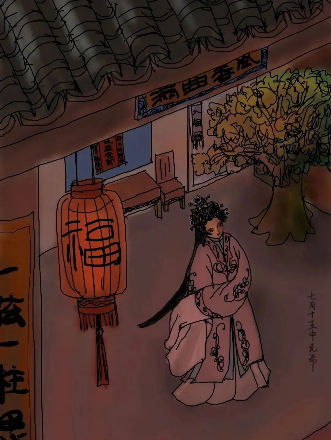 晚上,祭祀仪式基本结束,人们成群结队到勾栏瓦肆逛夜市,在舞台前看“目连救母”杂剧。