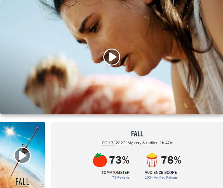 在影评网站“烂番茄”上,《下坠》目前有着73%的影评人好评度