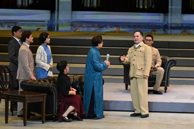 所以,观众在戏里看到陈毅在一群企业家面前展现了幽默风趣;在工人棚户区坦露出亲切真诚的本色;在“二·六”轰炸后,得悉有五百多名市民遇难时,他悲怆唱出了深深自责;在与妻子张茜的大段对唱中,又演绎了作为丈夫的挚爱柔情。