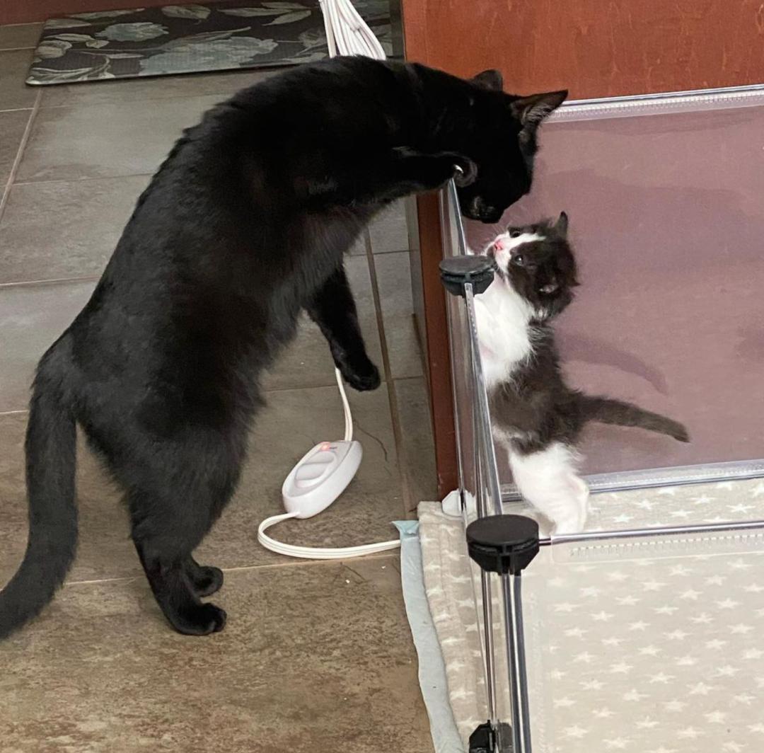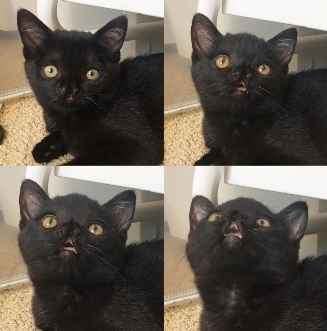 我家愚蠢的人类已经阳了十多天了,经历过咳血黄痰,现在好转后仍然鼻塞气短,吃顿饭喘得像跑5公里……所以在看到下面这只小猫咪的时候,她的第一反应是: