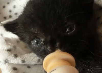 Aela在阿什利一口奶一口奶的悉心喂养下,半个月后才慢慢睁开眼,虽然相比普通小猫头来说是晚了些,但她还是看到了这个可爱的世界,同时让世界看到她那张可爱的小脸。