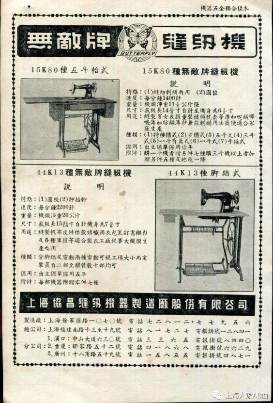 图说:1947年,“金狮”牌缝纫机改名为“无敌”。