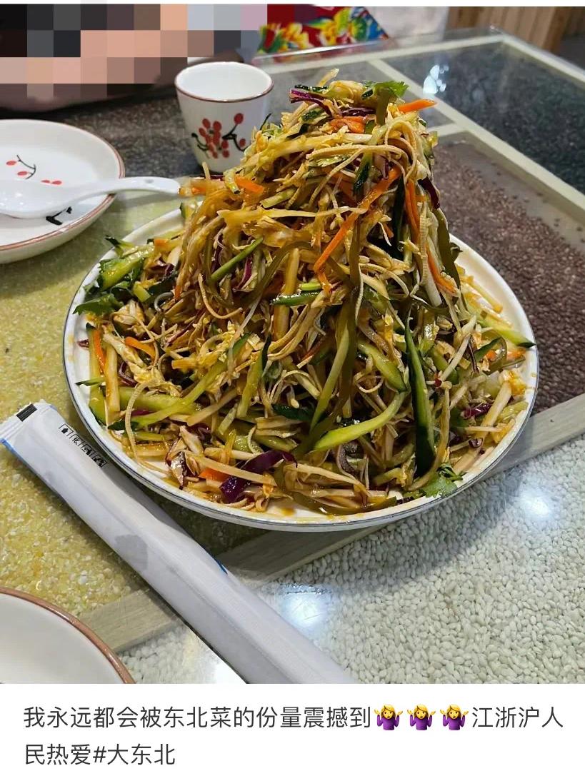 东北菜分量惊人,这一点众所周知,各大社交平台上充斥着东北美食的大量特写,网友们用自己的手掌或者脸去对比,最终得出结论:东北的一切都是plus版。