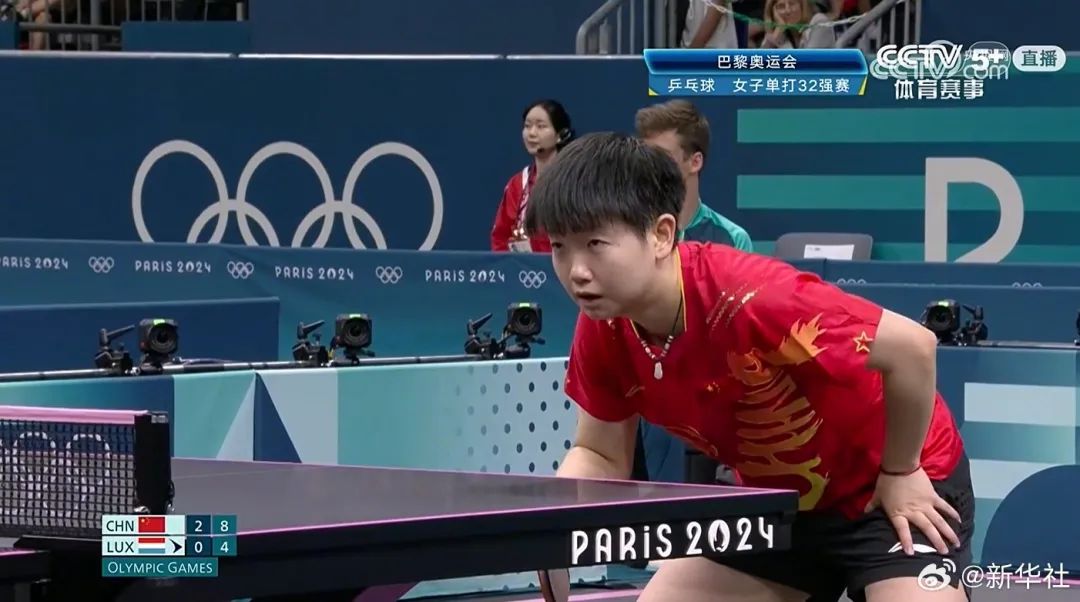 乒乓球女单比赛中,孙颖莎战胜61岁的卢森堡选手倪夏莲,晋级16强。