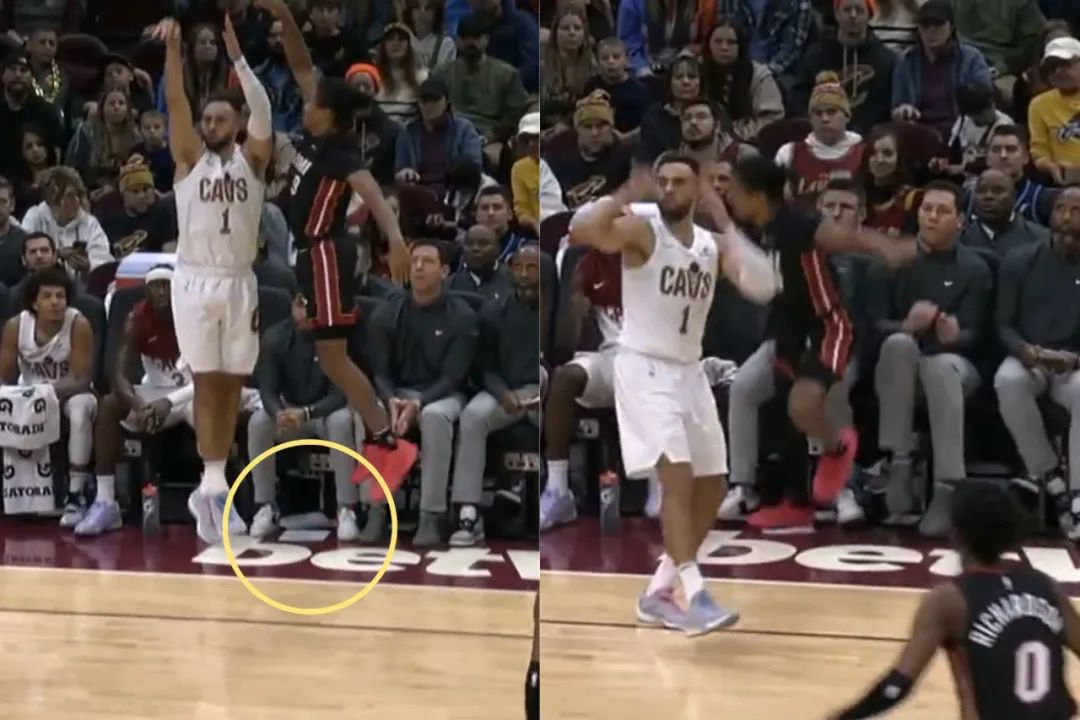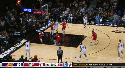 热火主场迎战篮网,在比赛的第二节,热火后卫德鲁-史密斯在一次变向过人时突然脚底打滑,摔倒在地。