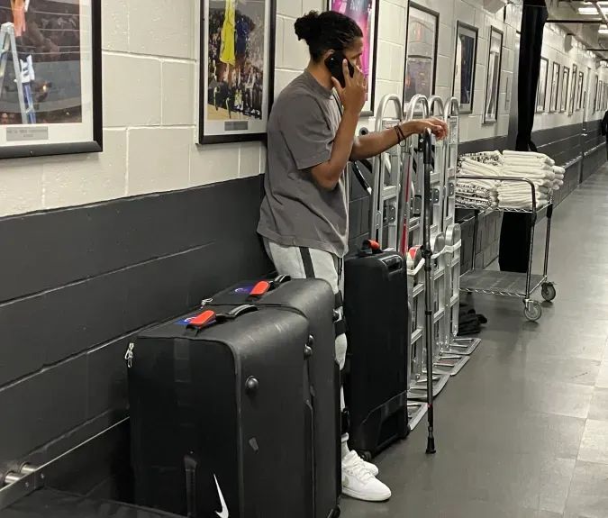 记者们冲到更衣室,挨个采访比赛的重要角色,德鲁打算像往常一样让出地方——拿着双向合同的球员,在主场甚至没有独立的更衣柜。他正往外走,被阿德巴约推了回来。
