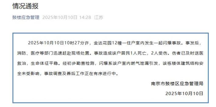 突发!一小区室内发生闪爆事故致1人死亡、2人受伤