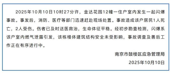 原标题:《室内闪爆致1死2伤!情况通报→》