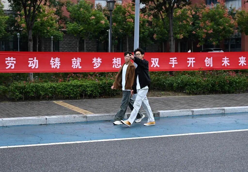 10月11日,孟成(右)和陈浩宇在青岛农业大学结伴同行。