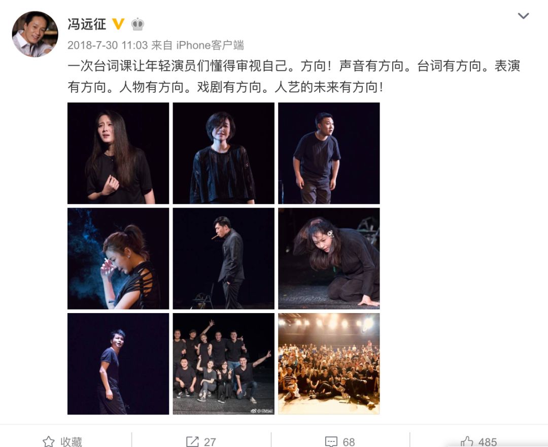 近几年,总有人在微博私信冯远征:“您收不收徒弟,您什么时候开个表演课,我们要学表演。”