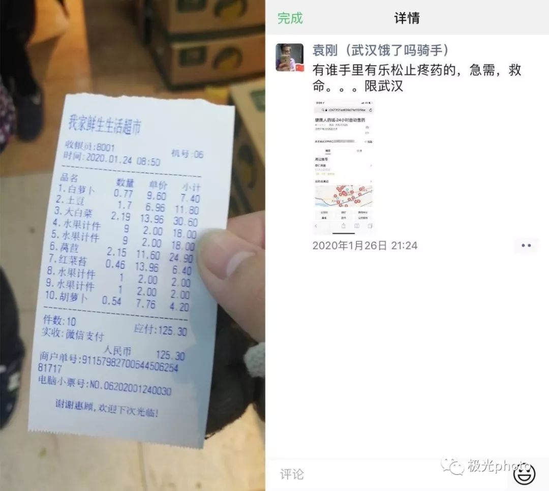 在为武汉的一户家庭送了急需的感冒药后,外卖骑手袁刚感叹道。