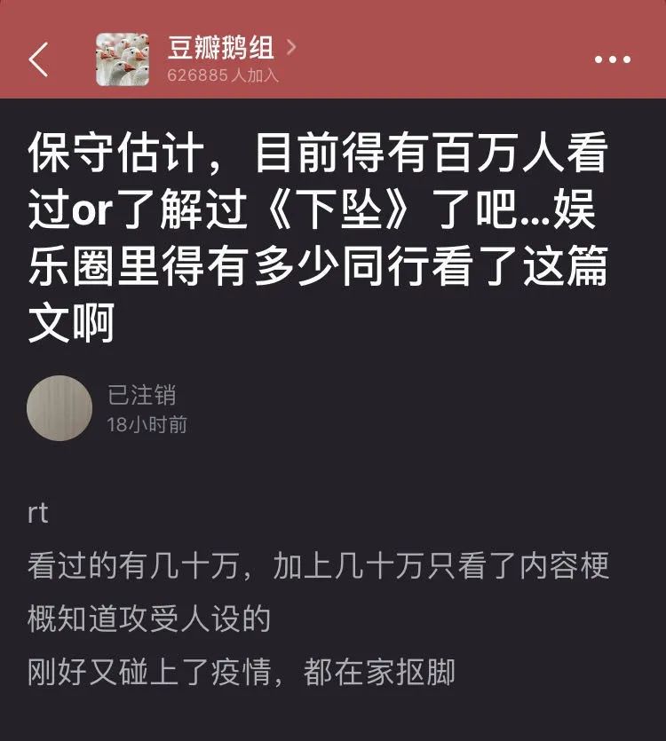 这件事发生后,从微博到豆瓣到微信群聊朋友圈,一片哀嚎。我第一次意识到我国“亚文化”群体如此之庞大,我身边的工程师、媒体老师、女博士卸下这些职业身份后,居然都是隐藏同人文爱好者。