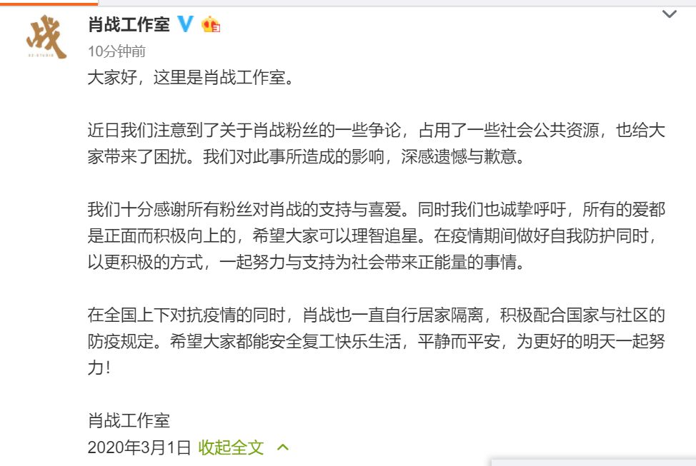 在各种压力下,3月1日晚间,肖战工作室与肖战后援会均为此事发表声明,但这两份声明示范了一场失败的危机公关。