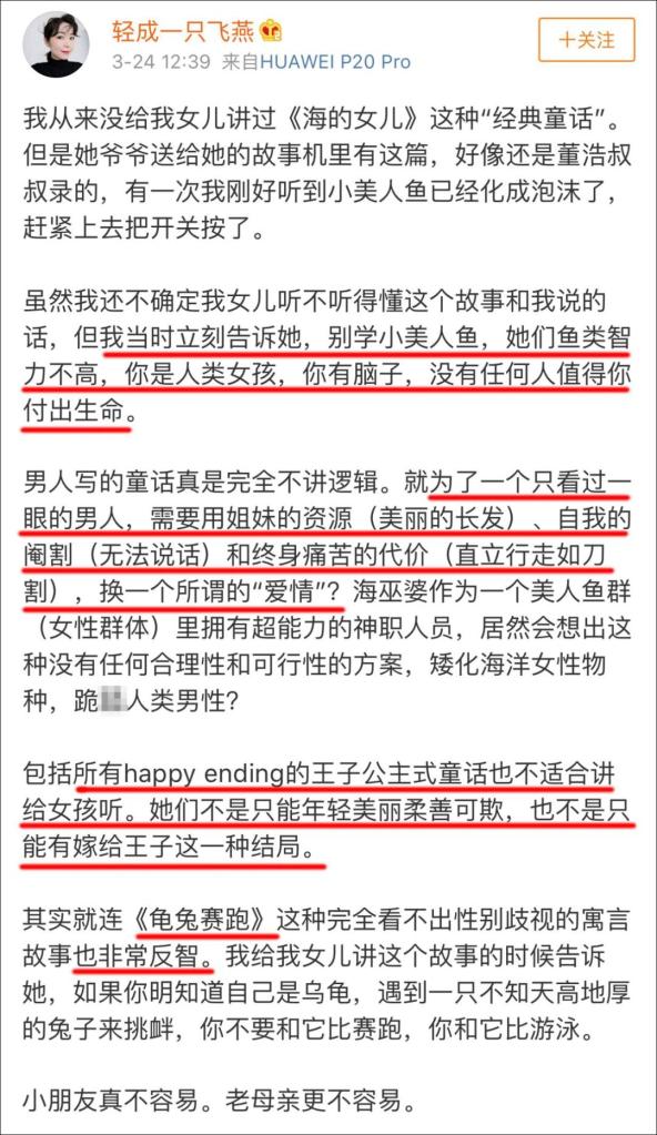 前段时间,微博上就有位妈妈质疑安徒生童话《海的女儿》中塑造的小美人鱼形象。