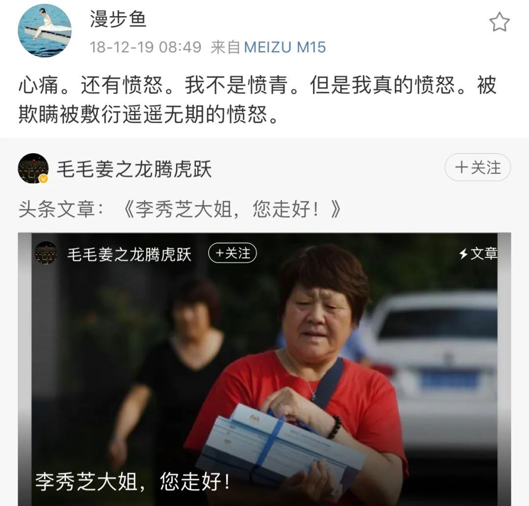 又过了一年,2019年12月5日,漫步鱼的微博最后一次更新。