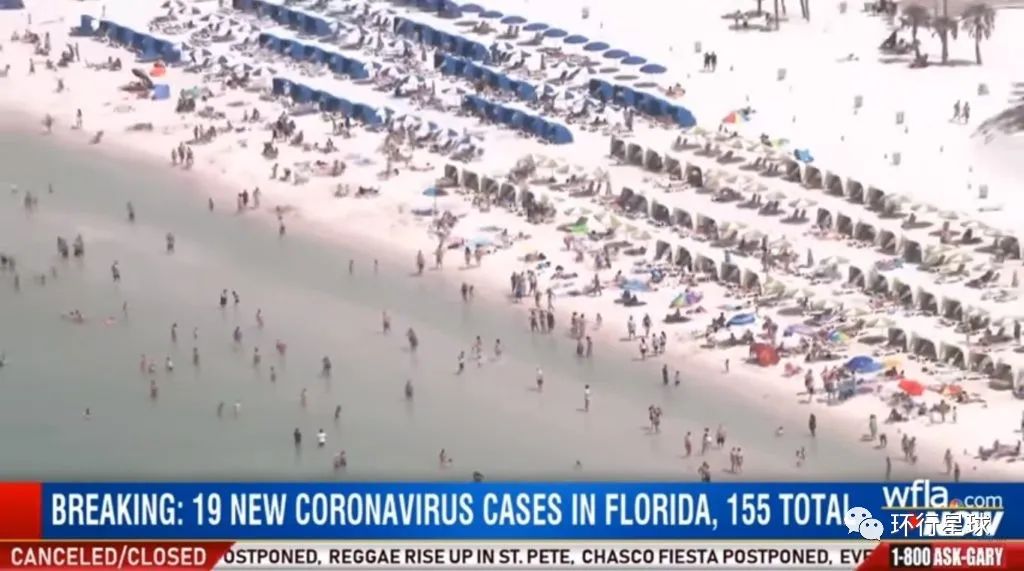 3月13日,美国宣布进入紧急状态,确诊人数为2000多。但据英国《每日邮报》报道,当天弗罗里达州的沙滩依然人满为患。