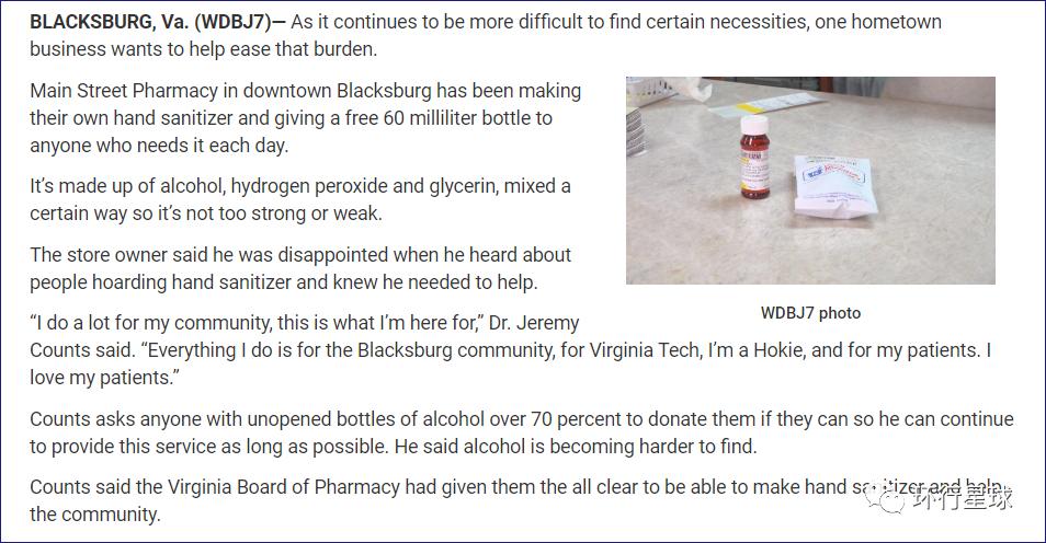 店主说他看到镇上超市消毒液断货,人们四处求购,于是便想到了自制消毒液服务社区。当然,他也提出酒精难以购买到,呼吁家中有70%以上浓度的多余酒精可以捐献出来,他好制作更多的消毒液服务大众。