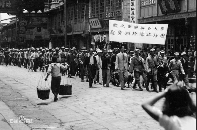 彼时西南联大校歌“万里长征,辞却了五朝宫阙。暂驻足衡山湘水,又成离别”,恰如其分地体现了南迁过程中的艰难险阻。