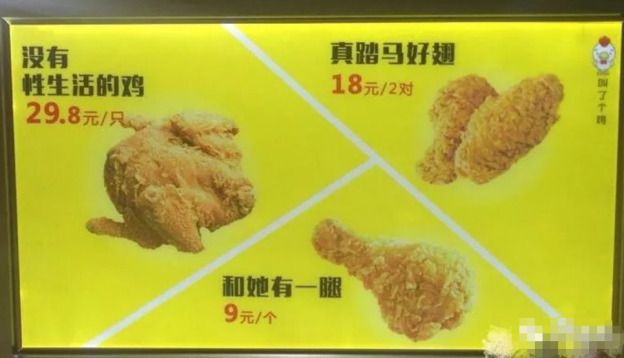路边香喷喷的一家炸鸡店,非要取一个“叫了个鸡”这样的名字。