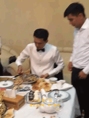 晨宴结束后,我以为自己躲过了用手吃抓饭的命运,但万万没想到的是,我还是在之后的婚礼环节上吃到了用手抓着吃的抓饭,而且还是别人的手喂的。