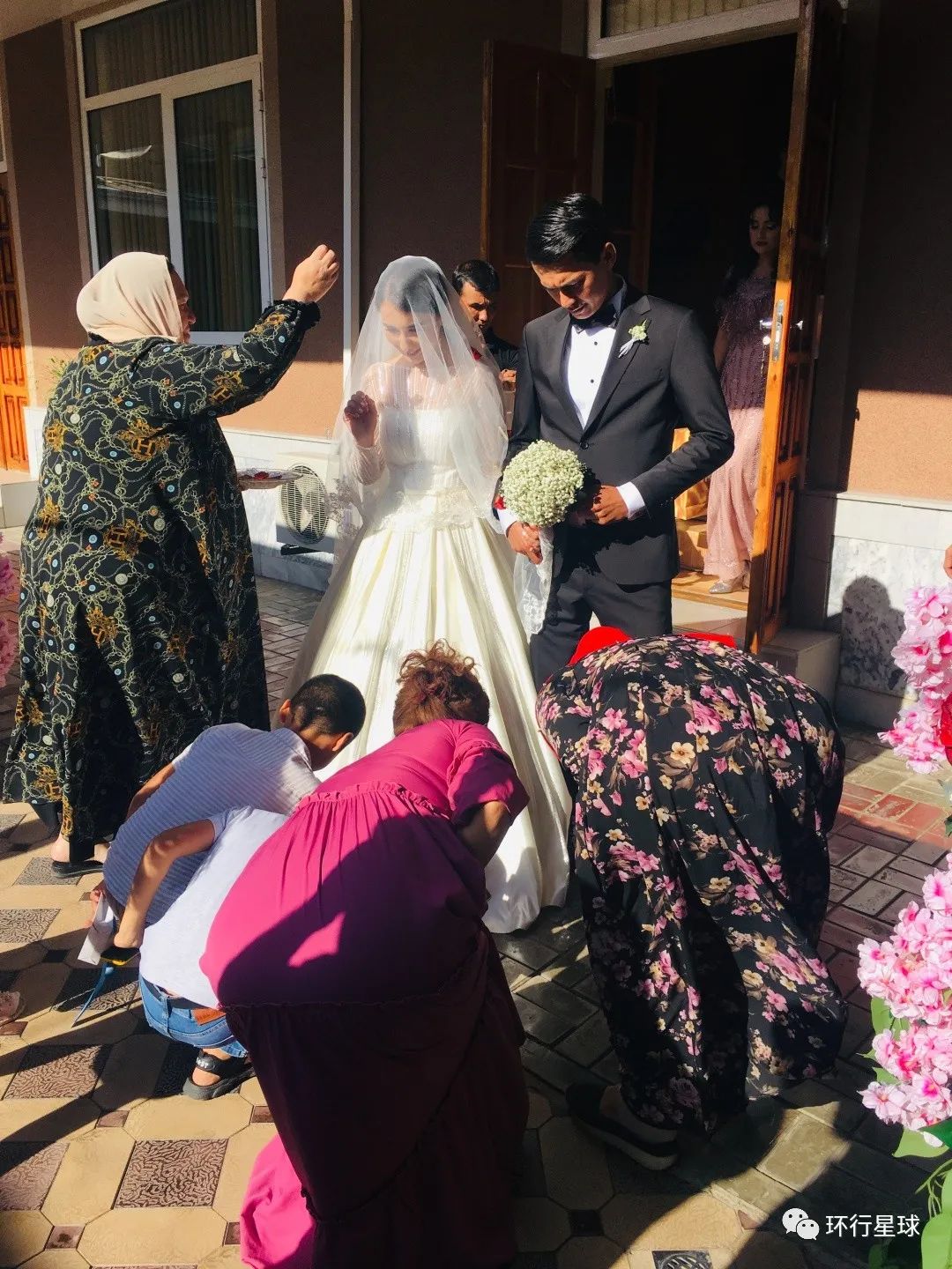 茶饱饭足后,阿訇拉过新郎,当着所有人的面不忘再叮嘱新郎几句。新郎此时整理了一下衣装与发型,在前呼后拥下敲开了新娘的闺房。新郎Khurshid是撒马尔罕人,新娘Nigina是塔什干人,他们在大学时代相识,尽管一个爱喝绿茶,一个爱喝红茶,但并不妨碍两人坠入爱河。再后来,一个留学日本,一个留学中国,远隔重洋,彼此牵挂。等到今年新娘博士毕业,两人方才结婚。