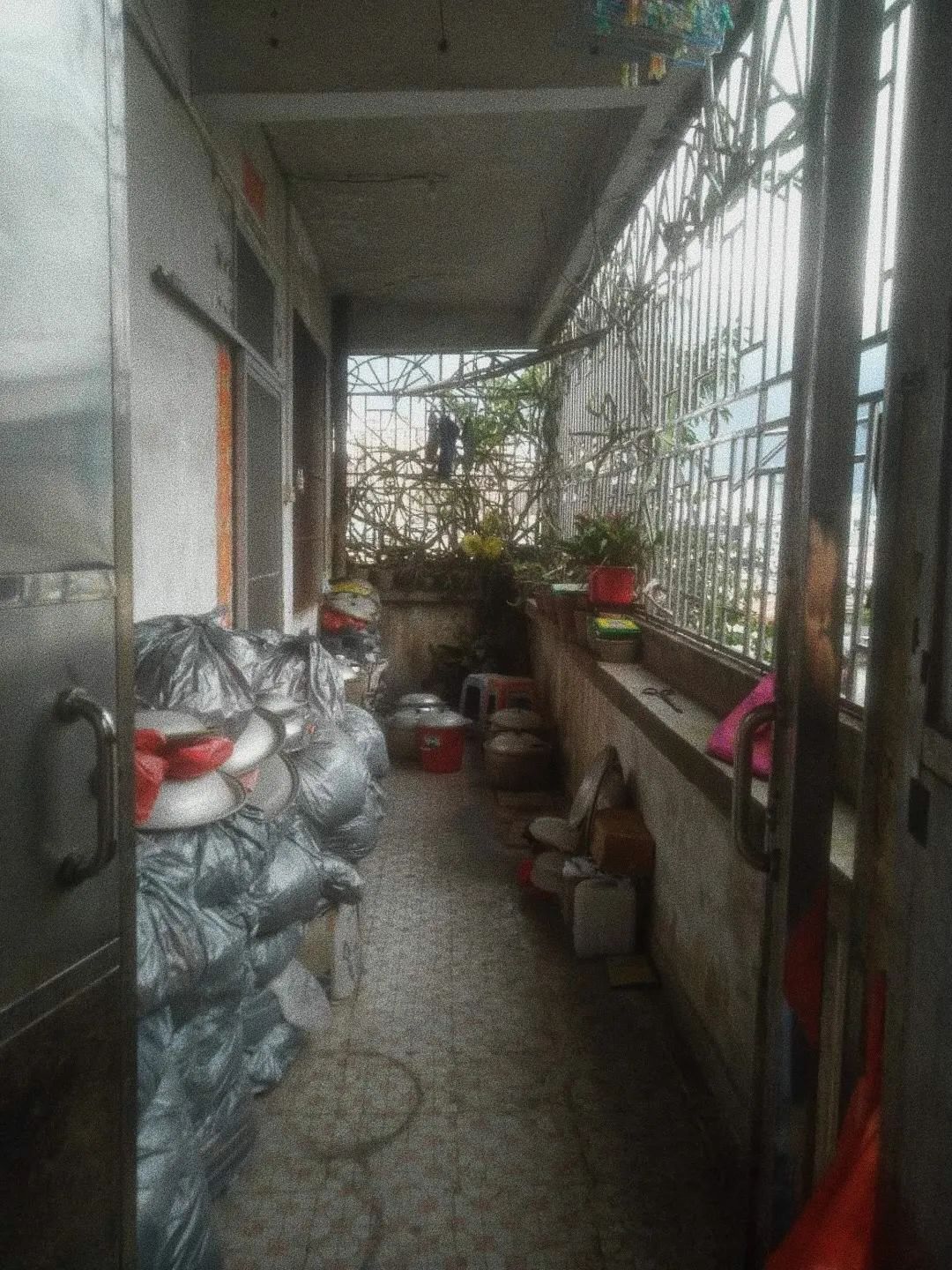 进门后是个小阳台,地上摆满了一堆不明物品,都用塑料袋包着,足足一米高。阳台另一头放了个煤炉,正在煮一锅东西,味道很奇怪。