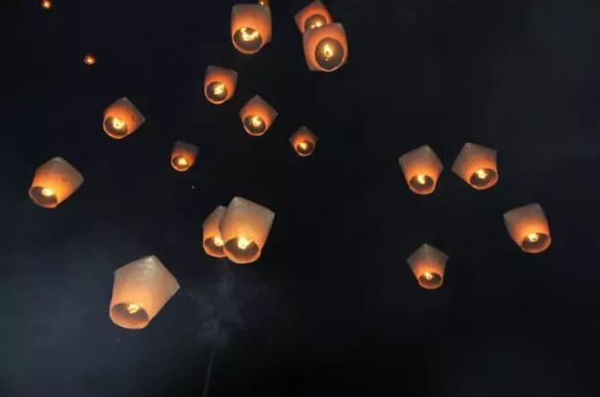 中元节这天放天灯也有两个说法,其一是把自己家霉运带走,带得越远越好。这时候就很忌讳别人家的天灯落在属于自己家的地方,如果落下来,就要重新放飞出去。其二是说,家家都希望自己逝去的先人都能进入极乐世界,鬼节这天放天灯,是为飞升极乐世界的先人们照亮升天的路。