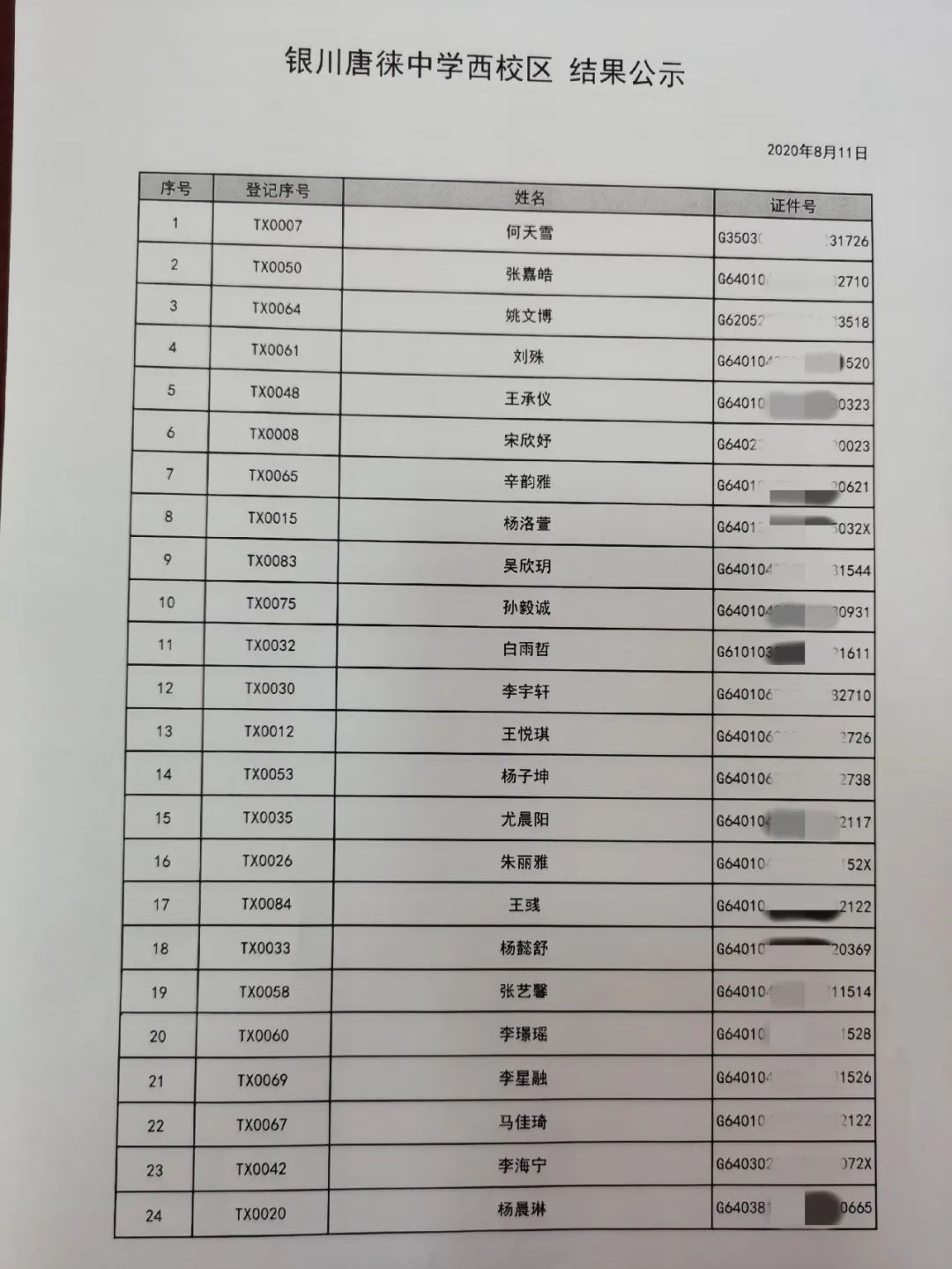 银川唐徕中学西校区剩余71个录取名额产生!(附名单)