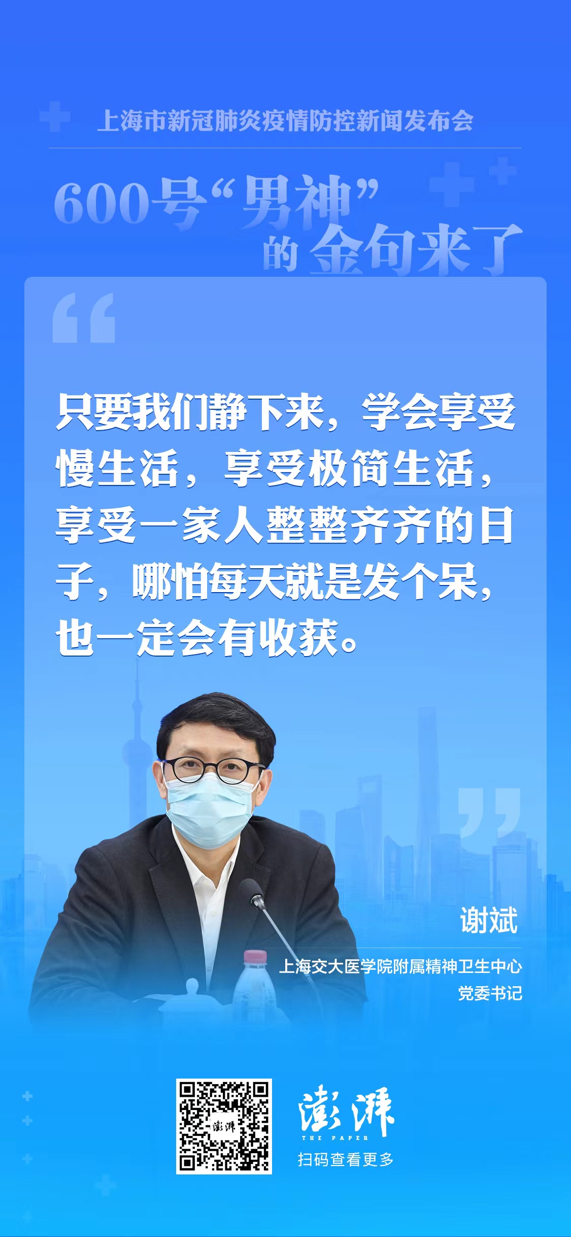 有记者提问谢斌:本轮疫情给人们的生活带来了一些冲击,大家难免会有些焦虑和担忧,对此您有哪些建议?