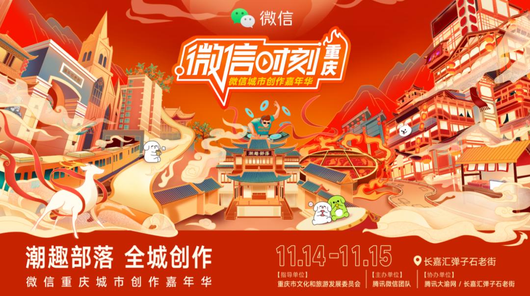 11月14日至15日,在重庆市委宣传部、市委网信办、市文化旅游委的指导下,腾讯微信在长嘉汇弹子石老街举办“微信时刻•重庆——微信城市创作嘉年华”。