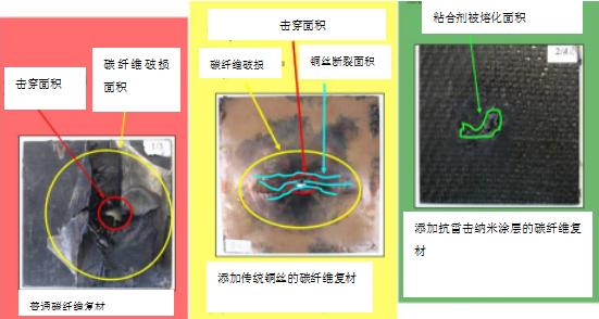 经过试验证明,这种新型的防雷电碳布结构与传统的添加铜丝网的防护方法相比雷击创伤面积可从65m2降低到4m2;减重80-310克/m2 ;避免了金属和碳布之间的腐蚀问题;新型防雷电纳米涂层碳布损坏之后还可修复,如果使用铜丝网就只能更换。另外新型涂层还考虑到了飞机的隐身性能。使用这种新型材料的蒙皮不会增加飞机的散射面积,蒙皮之间的连接处以及缝隙等都要填上高导电性的密封胶,使得飞机表面平整均匀,以保护飞机的低可探测性能。