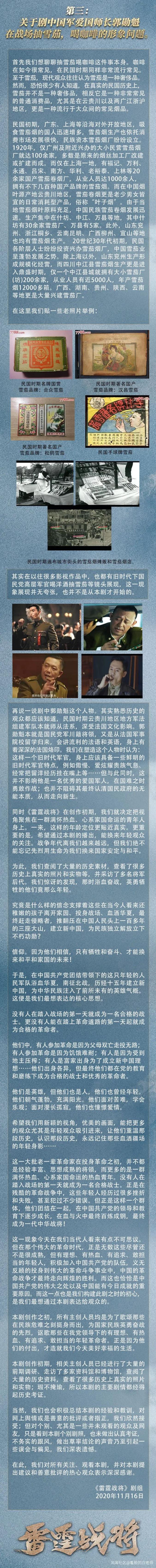16日下午,《雷霆战将》官方微博发布图文,对网上热议的一些情况,如关于剧中在抗战初期出现国民政府战地救护队女队员的裙装问题、年轻演员不适合出演八路军将领、剧中国军爱国师长郭勋魁在战场抽雪茄、喝咖啡的形象等问题进行了说明。