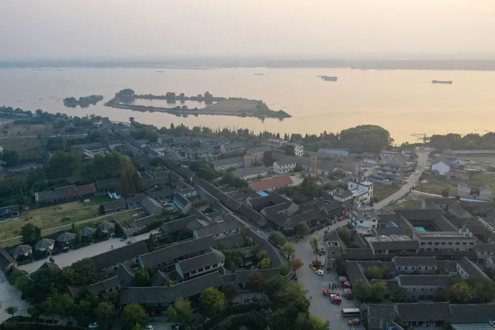 ▲无人机拍摄的运河边的徐州窑湾古镇(2019年10月19日摄)。