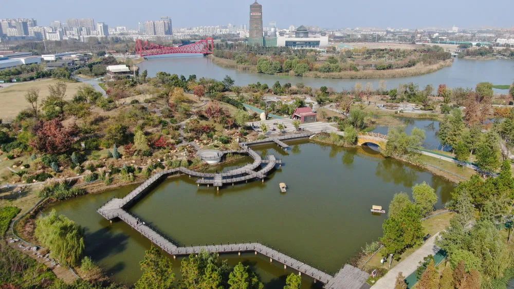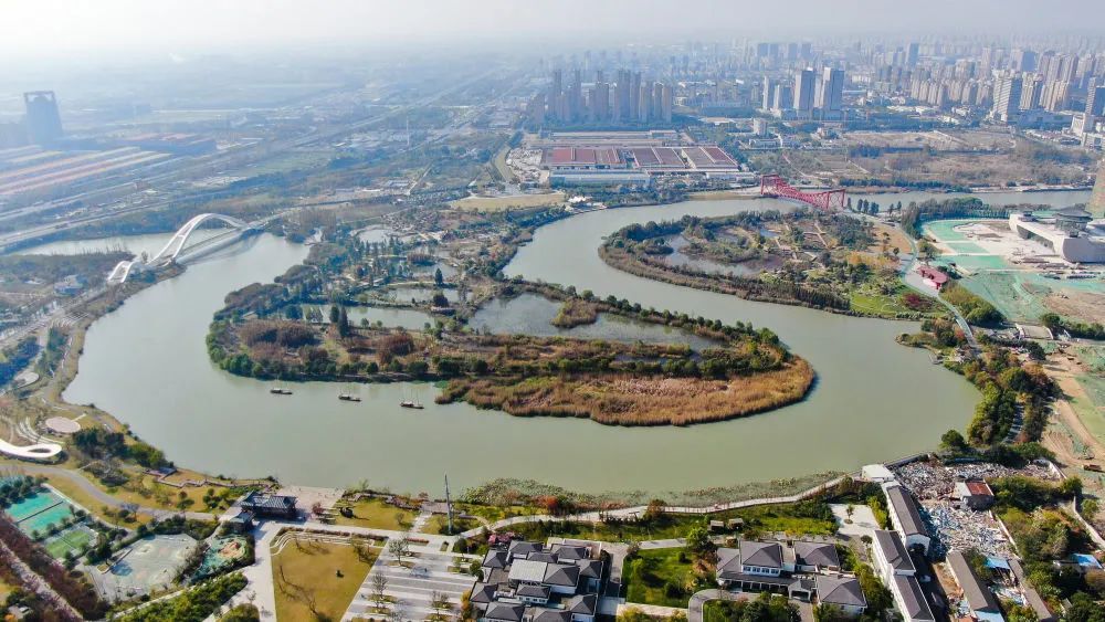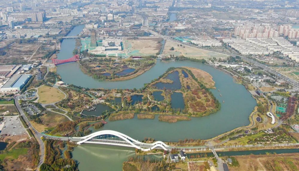 ▲这是11月14日拍摄的运河三湾生态文化公园景色(无人机照片)。