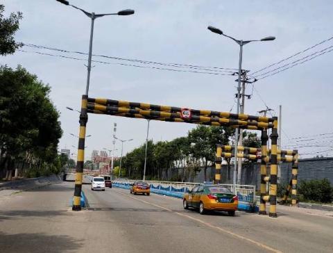 三河市交通运输管理部门回应称,已降低限高杆的高度,设置为符合相关要求的4.25米。