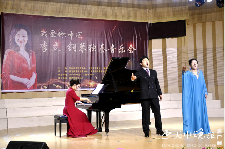 随后,李立老师和河南著名钢琴演奏家艾赛赛老师合作为大家带来钢琴协奏曲《黄河》片段,表达了对中华民族母亲河和中华儿女优秀品质的歌颂和敬意,让观众产生了强烈的思想共鸣。