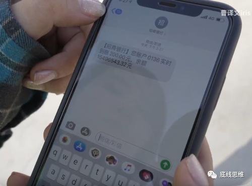 这还没完,在视频末尾,她让工头把当天的工钱转到自己银行卡上时,“非常不经意”地让工头看到了自己的银行卡余额。